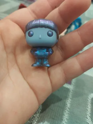 Figura coleccionable de estilo Funko Pop. - Diseño con acabado iridiscente. - Detalles en tonos azules y morados.