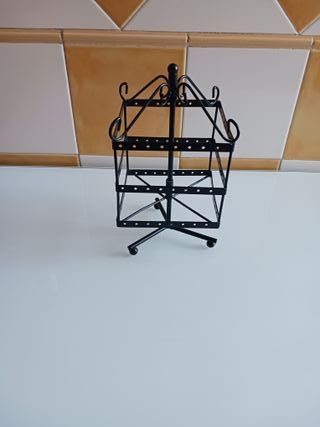 Organizador de Pendientes. Metálico y de color negro. Ideal tanto para una casa, como para un comercio. Es giratorio y muy cómodo. Medidas 26 cm Alto y 13 cm Fondo y Ancho. Peso 500 gr.