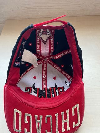 Gorra de los Chicago Bulls de la marca Adidas. Diseño clásico con el logo del equipo. - Color principal negro con detalles en rojo. - Visera plana. - Logo de los Bulls bordado en la parte frontal.