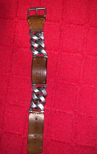 Pulsera con un diseño trenzado y detalles metálicos. - Material principal: cuero trenzado. - Color: rojo y plateado. - Cierre de mosquetón con cadena de ajuste. - Adorno central con diseño grabado.