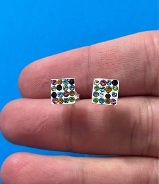 Pendientes Cuadrados Multicolor Plata De Ley 925