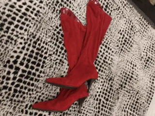 Botas terciopelo rojo y broche piel serpiente T39