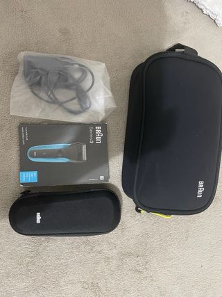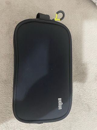 Maquina con Funda de viaje para afeitadora Braun Serie 3. Diseñada para proteger tu dispositivo. - Material exterior resistente. - Cierre de cremallera. - Asa de transporte superior. - Incluye mosquetón para colgar.