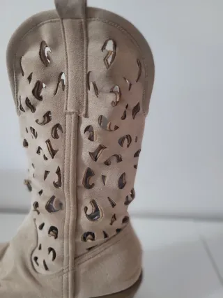 Botas de mujer con un diseño calado. - Cremallera lateral. - Tacón bajo. - Estilo cowboy.