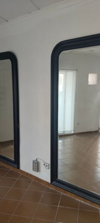 Conjunto de artículos para peluquería. - Marco negro. - Espejos. - Lavacabezas - Sillones hidráulicos - 2 mostradores blancos (Regalo camilla + termo eléctrico)
