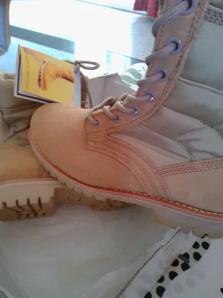 Botas militares nuevas a estrenar. Ideales para cualquier aventura. - Fabricadas con material de alta calidad. - Membrana GORE-TEX impermeable y transpirable. - Diseño resistente y duradero. - Color marrón y verde oliva.