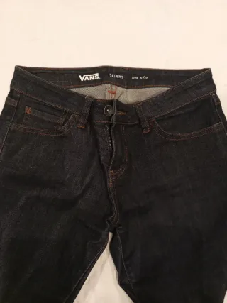 Pantalón vaquero de mujer de la marca Vans. Talla 5/27 - Tono color gris oscuro para negro - Costuras en contraste. - Detalle de etiqueta en el bolsillo trasero.