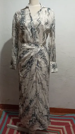 Vestido con estampado de serpiente y manga larga. - Diseño cruzado. - Detalle de nudo lateral. - Corte ajustado.