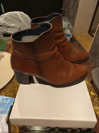 Botines de pielen tono marrón. Un básico para tu armario. Son de cachalote marca dorking en la parte de marca tengo que poner otra cosa porque no me sale la suya. - Cierre con cremallera lateral. - Suela de goma.