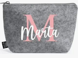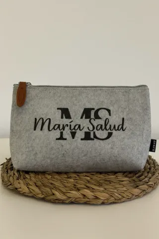 Neceser de fieltro gris personalizado con inicial y nombre o como se quiera