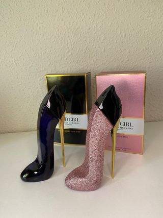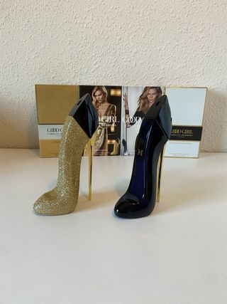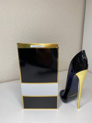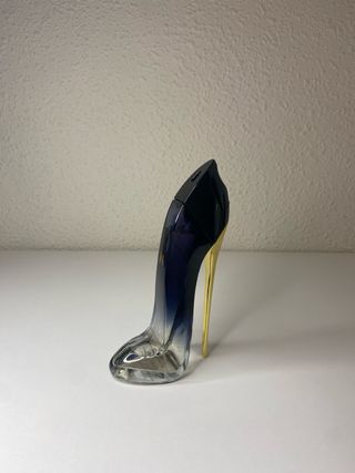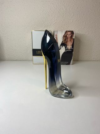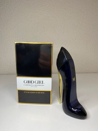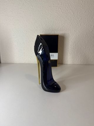 Este es el icónico perfume Good Girl de Carolina Herrera. - Fragancia en presentación de 80ml. - Diseño de botella en forma de tacón. - Color azul y detalles dorados.