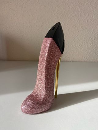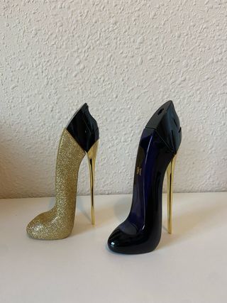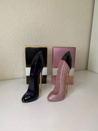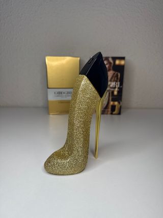 Este es el perfume Good Girl de Carolina Herrera, con un diseño icónico en forma de zapato de tacón. - Fragancia femenina. - Botella con detalles dorados.
