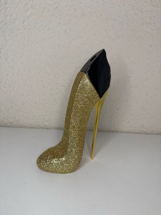 Este perfume de Carolina tiene un diseño icónico en forma de zapato de tacón. - Acabado brillante dorado con detalles negros. - Incluye caja.