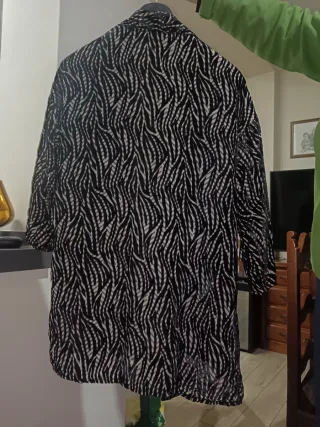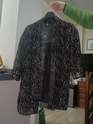 Kimono negro y beige estampado