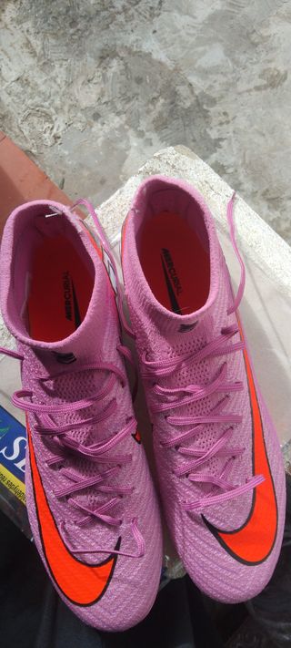 Botas de fútbol Nike Mercurial Superfly 10 Elite. - Diseño en color rosa y naranja. - Modelo Superfly 10 Elite.