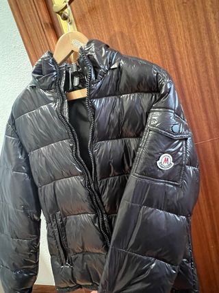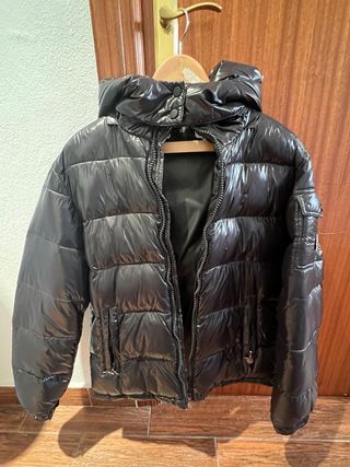 Chaqueta acolchada con acabado brillante. - Diseño acolchado. - Cierre de cremallera. - Capucha con cremallera. - Bolsillos frontales. - Unico defecto le falta un botón al gorro.
