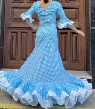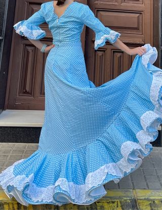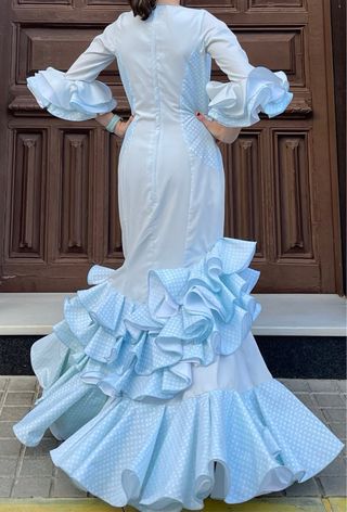 Vestido de flamenca azul y blanco