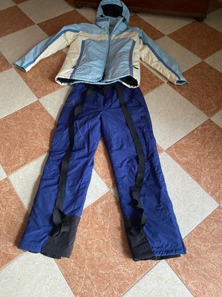 Conjunto de ropa para la nieve. - Chaqueta con capucha. - Pantalón con tirantes negros.