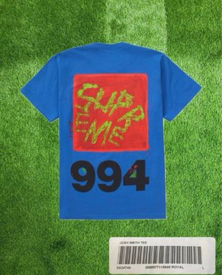 Camiseta Supreme Josh Smith Tee en color azul real con estampado gráfico. - Estampado frontal con logo Supreme y número. - Diseño artístico en la espalda. - Talla L.