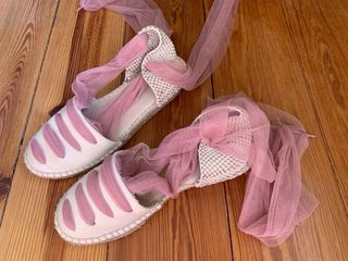 Esparteñas exclusivas, único modelo. Diseñadas para Comunión. T.36 Sólo unas horas de uso. Ideales después para diario. Muy cómodas. Tonos rosas con brillo