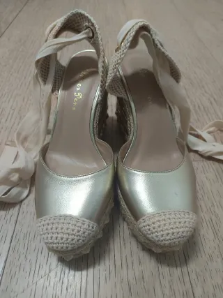 Zapatos de esparto como nueva talla 40. - Solo a puesto una vez para una sección de fotos. - En la foto se ve que no tiene los dedos señalados ni nada.