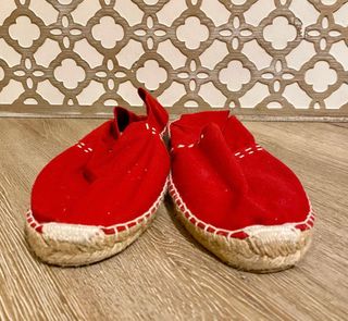 Alpargatas en colores rojo y blanco. Alpargatas con bordes de esparto, talla 44. Solo se realizan envíos 📦.