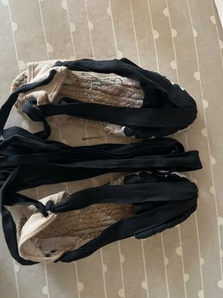 Alpargatas con lazos negros. - Material exterior de esparto. - Cierre con lazada. - Diseño abierto en el talón.