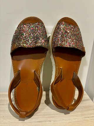 Alpargatas color marrón y arriba tiene brilli brilli, le di buen uso pero tiene para más. Talla 40