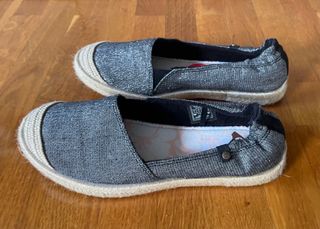 Alpargatas negras de lona, ideales para danza tradicional vasca. Son usadas, pero están en buen estado. Tallas 36 y 38 disponibles - Hechas de lona resistente. - Suela de esparto. - Lazadas para ajustar al pie. - Perfectas para bailar.