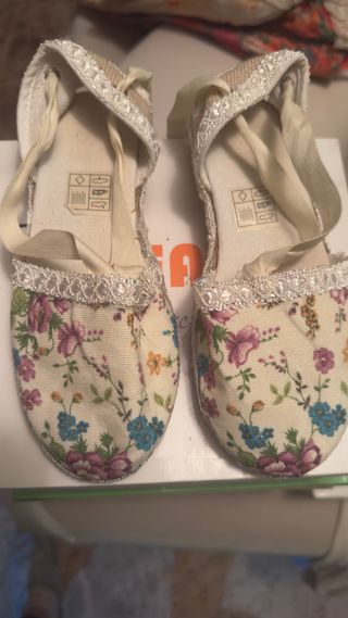 Totalmente nuevas sin usar. Espardeñas valencianas con un diseño brillante y elegante. Tú complemento ideal para la ofrenda, comodisimas. - Plateadas - Cierre con cintas. - Suela de esparto.