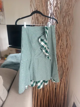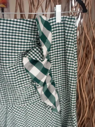 Preciosa falda asimétrica de Zara con estampado de cuadros. - Diseño con volantes. - Bajo asimétrico. - Estampado de cuadros verde y blanco.
