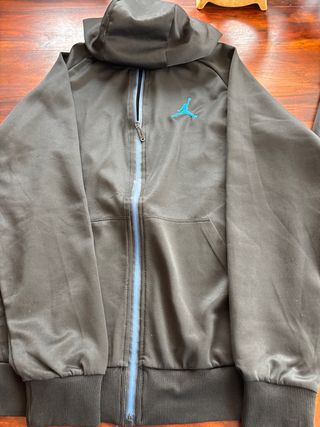 Chándal Jordan con cremallera completa y capucha. - Logo Jordan en color negro y azul - Bolsillos frontales. - Puños y cintura elásticos. Es una l pero da poca talla para un nińo de M