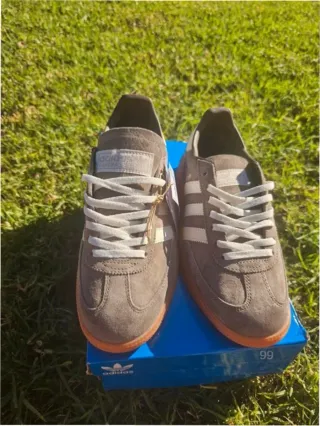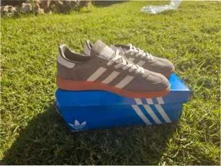Zapatillas Adidas Handball Spezial en color marrón y blanco con suela gum. - Diseño clásico. - Materiales de gamuza y cuero.