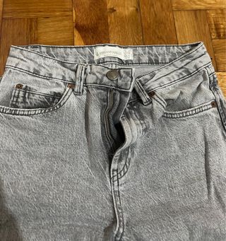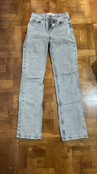Pantalón vaquero de Stradivarius en color gris. - Corte recto. - Tiro alto. - Lavado desgastado.
