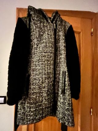 Abrigo Only gris y negro con mangas punto