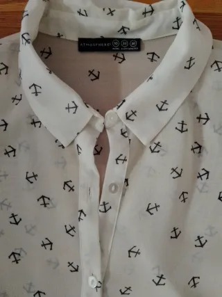 Camisa de manga larga fina con un estampado de anclas. - Diseño ligero y transparente. - Mangas enrollables con detalle de lazo. - Cuello camisero clásico. Precio negociable