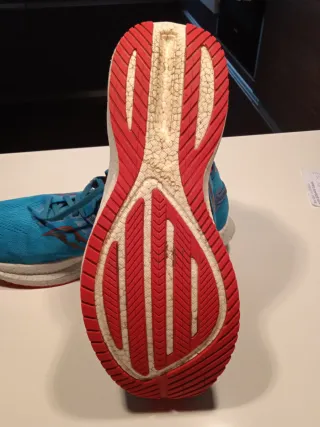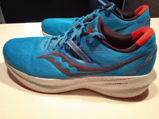 Zapatillas de running Saucony Triumph 20 en tonos azules con detalles en rojo y negro. Suela con tecnología PWRRUN+. Muy poco uso