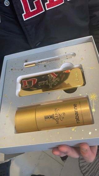 Set de fragancia 1 Million de Rabanne en un elegante acabado dorado. Incluye varios productos para una experiencia completa. - Fragancia icónica en frasco dorado. - Producto complementario en formato spray. - Envase de regalo con diseño festivo.