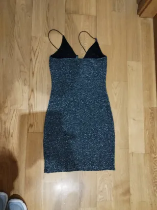 Vestido corto de fiesta con un acabado brillante. Muy cómodo elástico - Diseño con tirantes finos. - Tejido con destellos.