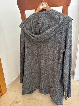 Sobrecamisa larga de punto con capucha. - Diseño abierto. - Manga larga. - Tejido suave y ligero.