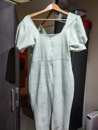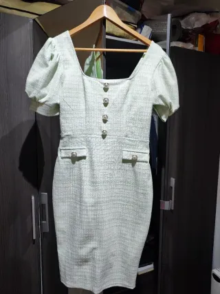 Vestido verde tweed botones perla