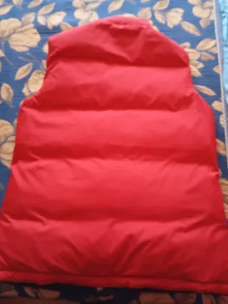 Chaleco acolchado C&A con forro interior en tono rojizo. - Cierre de cremallera frontal. - Cuello alto. - Bolsillos laterales con cierre de botón a presión.