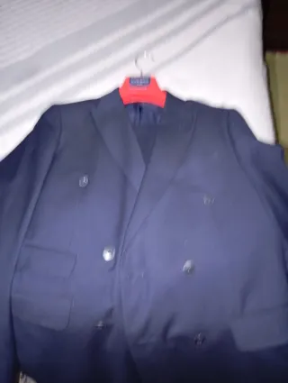 Conjunto de chaqueta y pantalón para chico en color azul marino. Nuevo a estrenar. - Chaqueta con cierre de dos botones. - Bolsillos frontales con solapa. - Pantalón de vestir. - Corte moderno. talla chaqueta 46 talla pantalón 40