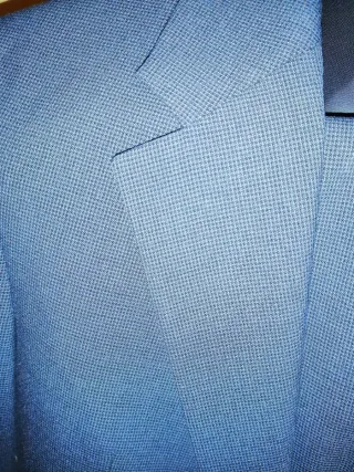 Elegante traje azul para hombre, ideal para la primavera y verano. Incluye chaqueta, pantalón y camisa a juego. Lo vendo con camisa o sin ella, está nuevo, usado un día para ir a una ceremonia, el tejido del traje hace como un dibujo, no es liso, medidas chaqueta hombro 46cm, pecho 50cm, largo 75cm, pantalón cintura 42cm, largo 107cm - Traje de corte moderno y favorecedor. Slim fit, corte juvenil - Tejido de calidad, suave al tacto. - Perfecto para eventos especiales u ocasiones formales. - La camisa presenta un estampado elegante.