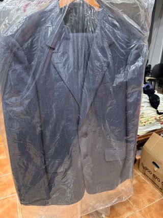 Traje de rayas azul marino talla 48 con chaleco