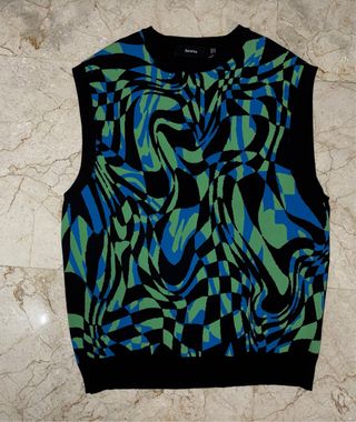 Chaleco con un llamativo estampado. - Diseño sin mangas. - Cuello redondo. - Estampado abstracto en negro, verde y azul. - Largo 66, axila 52, hombros 48.