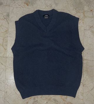 Chaleco de punto azul de la marca Emidio Tucci Talla 9. Es una prenda versátil y cómoda. - Diseño de punto texturizado. - Cuello en V. - Cierre de botones. - Dos bolsillos frontales.