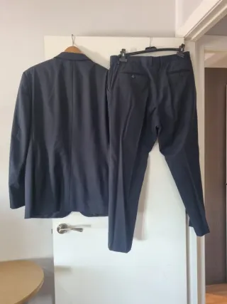 Traje azul marino usado una sola vez, en estado impecable. Chaqueta talla 54 y pantalón talla 46. Muy cómodo y elegante, perfecto para bodas, eventos o trabajo. Se vende por no usar.