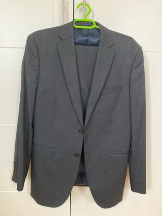 Traje de chico, talla 40, usado una sola vez. Se encuentra en perfecto estado. Limpio de tintorería - Chaqueta de corte moderno. - Pantalón a juego.