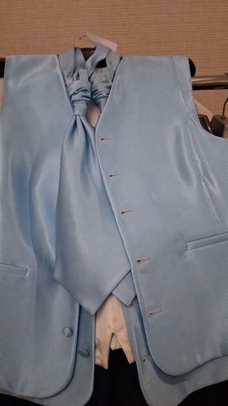 Conjunto de chaleco y corbatón en tono azul claro. - Chaleco de vestir con botones. - Corbatón a juego. (Preguntar otras tallas)